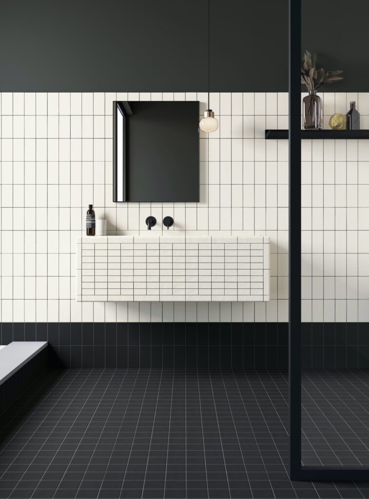 DIN signifie Deutsches Institut für Normierung, soit Institut allemand de normalisation. En Allemagne, une feuille de papier A4 est appelée DIN A4. DIN représente une approche totalement inédite de la mosaïque moderne. Conçue selon une logique modulaire rigoureuse, la collection permet de jouer avec les éléments et offre un large éventail d’applications possibles, des concepts les plus simples aux plus complexes, témoignant d’une flexibilité quasi illimitée. DIN propose quatre éléments aux formats 15×15 cm, 7,4x15cm, 7,4×7,4cm et 3,6×7,4cm, déclinés en huit coloris et deux finitions (mate et brillante), pour un total de 64 carreaux de céramique.