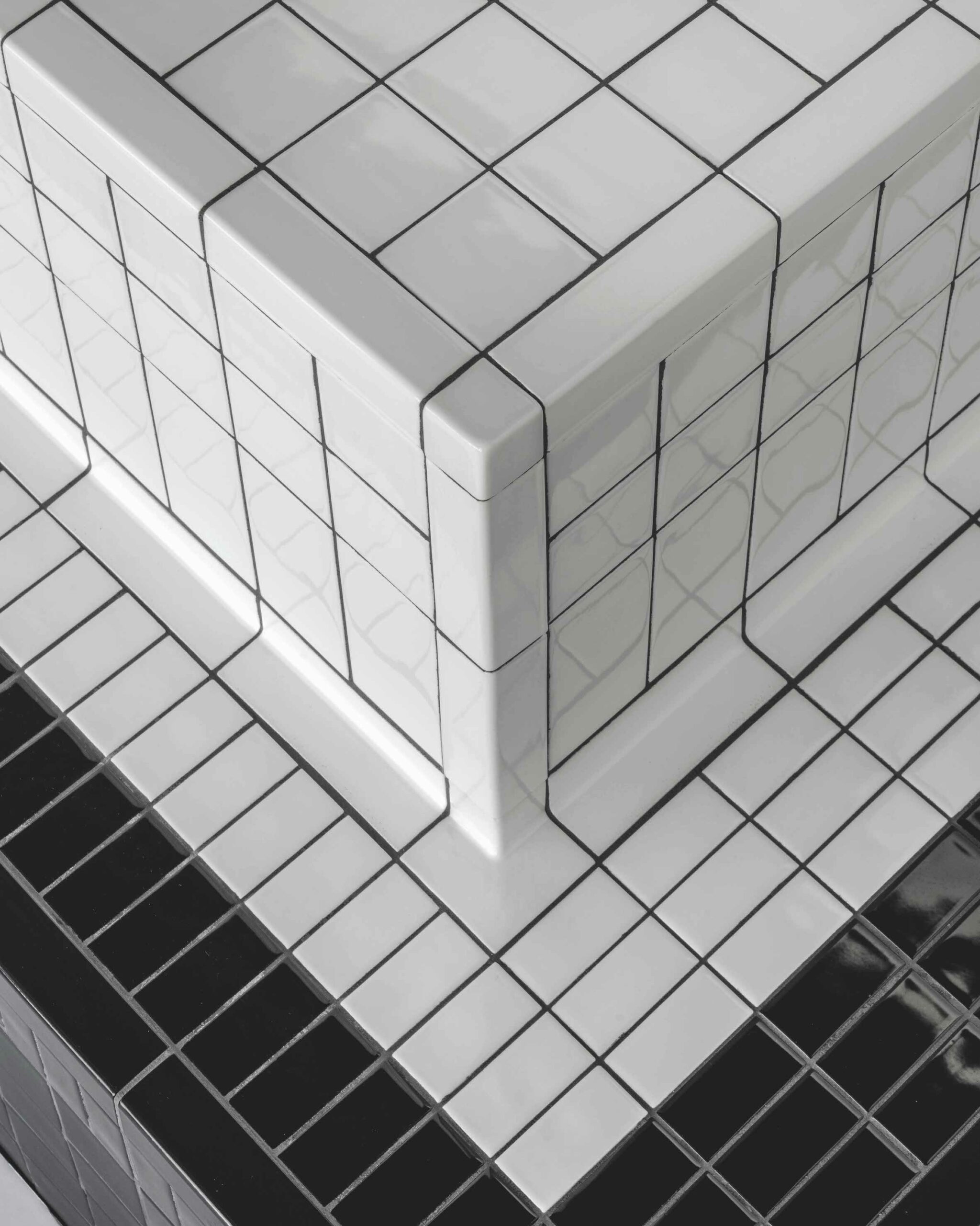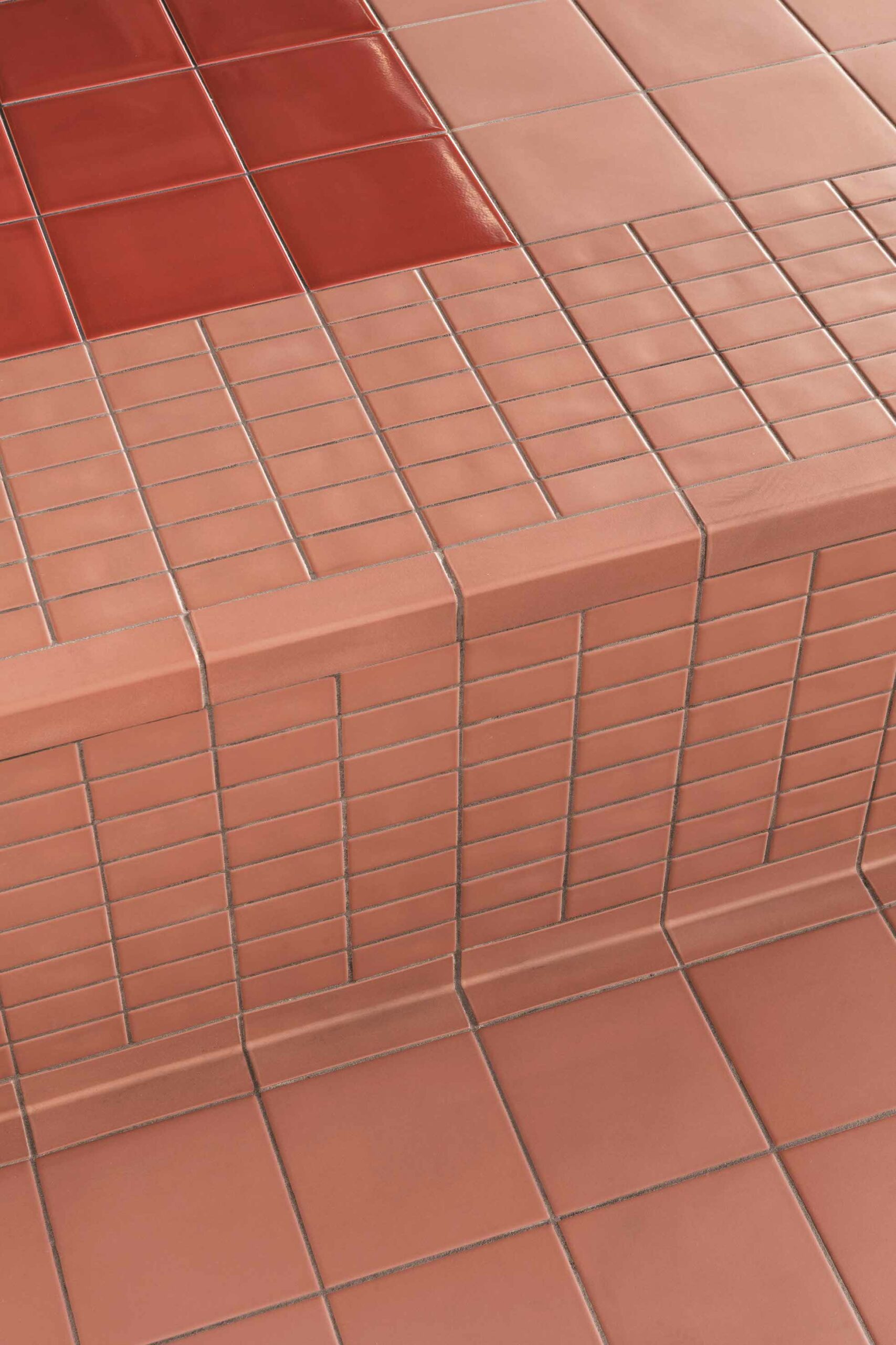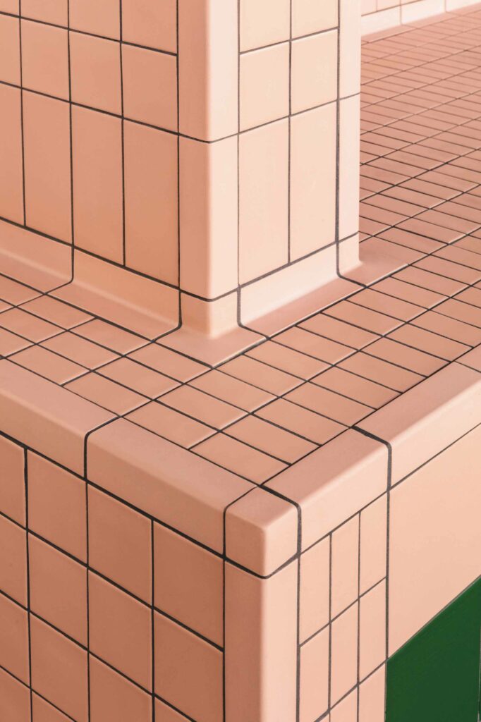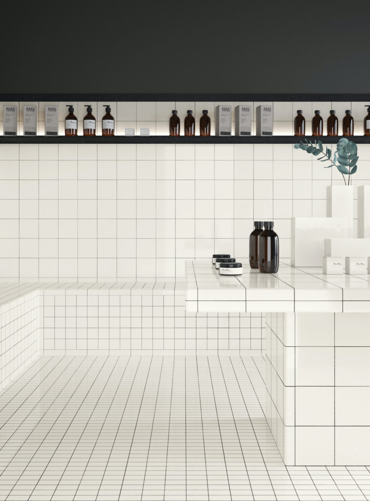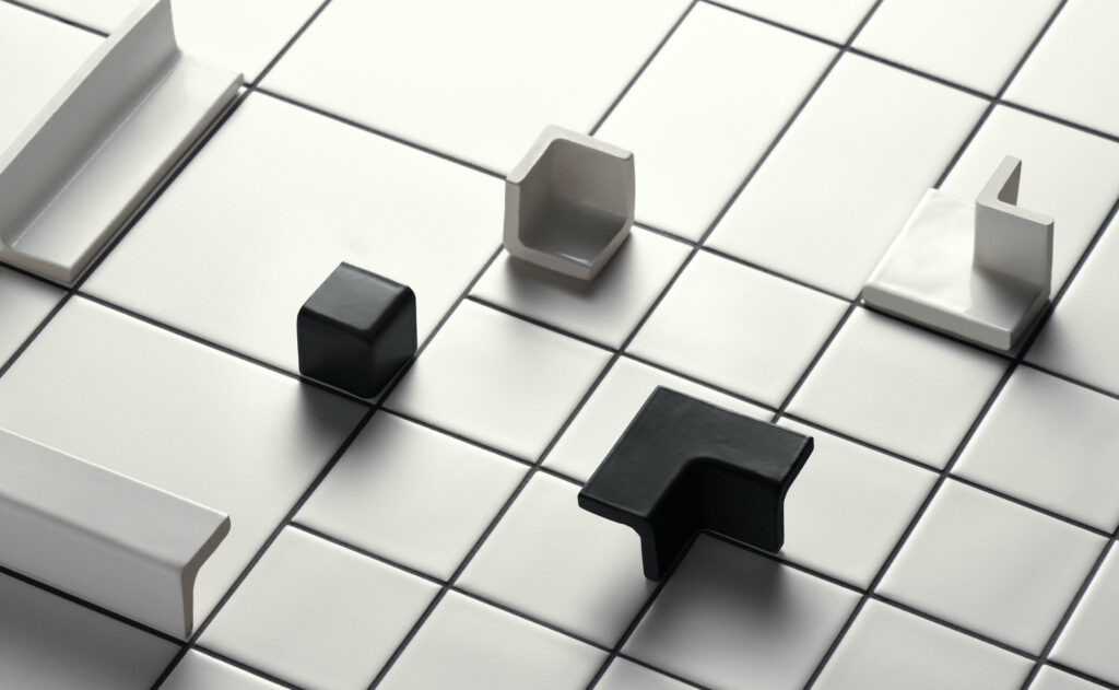 Les quatre formats sont modulaires, avec un joint de 2mm. La possibilité de combiner différents formats, textures et couleurs garantit un potentiel créatif et permet d’adapter le motif aux dimensions d’un mur ou d’un sol. DIN s’étend également à la troisième dimension, offrant une gamme d’éléments pour angles et profils permettant de créer des solutions architecturales et d’ameublement innovantes.
