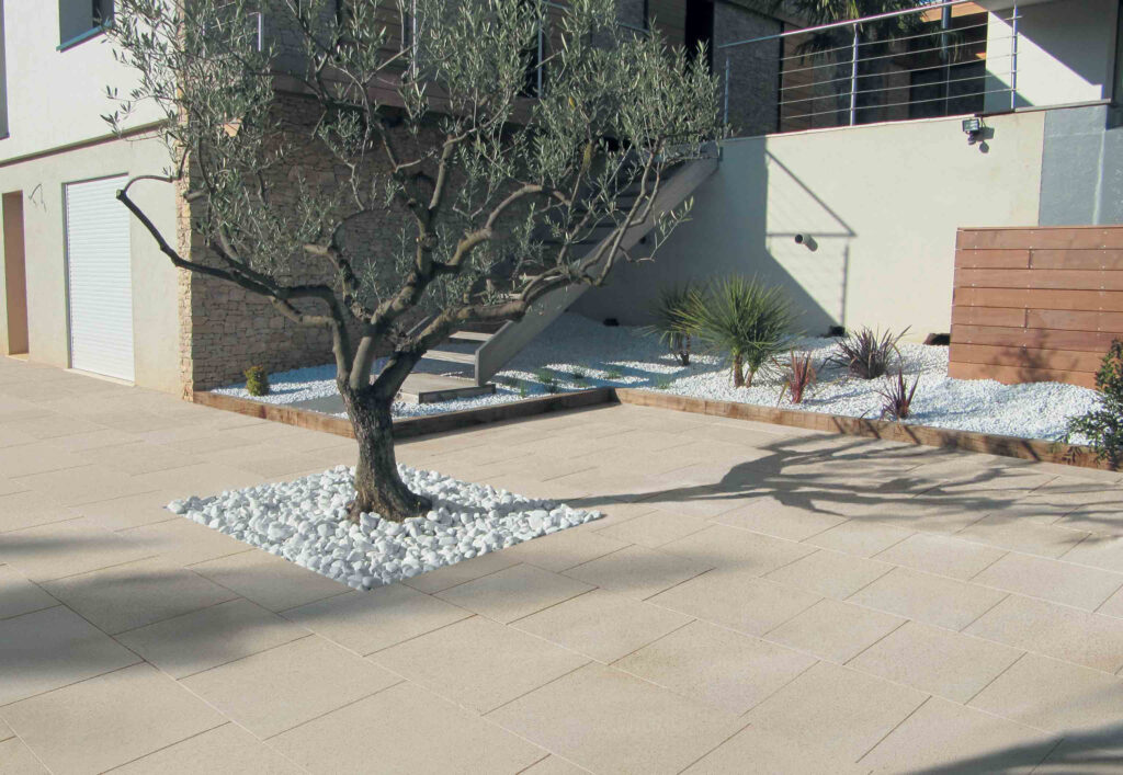 Spécialement développée pour une pose sur plots, la dalle en béton pressé Horizon répond parfaitement aux besoins des étancheurs. Adaptée aux toitures-terrasses, terrasses et balcons, elle combine robustesse, durabilité et facilité de mise en œuvre. Proposée avec une finition lisse, la dalle Horizon, classée T11, convient aux espaces publics ou collectifs accessibles uniquement aux piétons.  Elle est disponible en trois nuances de gris actuelles – Anthracite, Pierre et Ventoux -, qui s’intègrent parfaitement aux aménagements extérieurs contemporains.