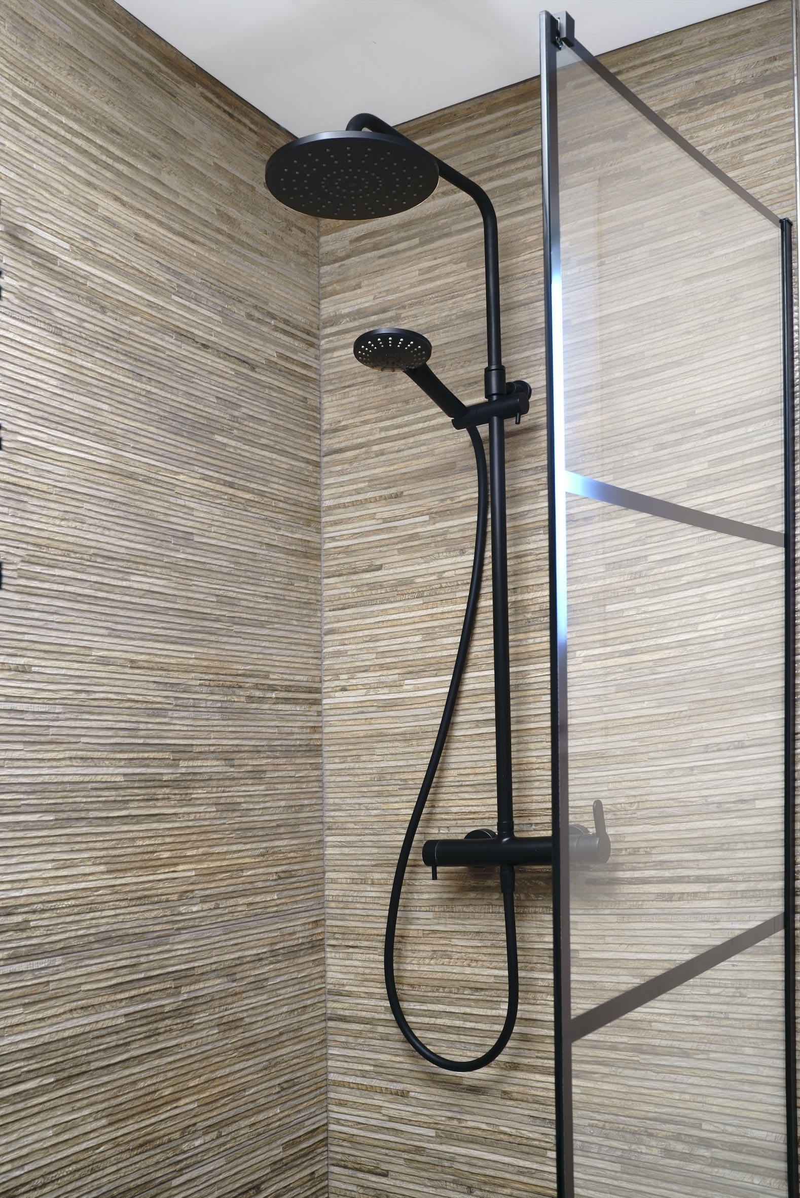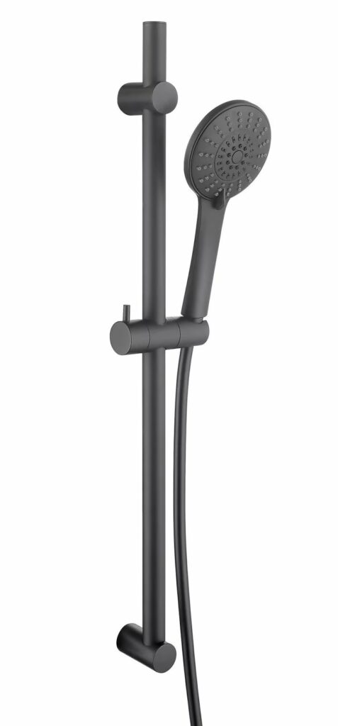 Performant et design avec sa finition noire mate, le nouveau kit de douche BLACK ROMA Wirquin apporte une touche contemporaine. Sa douchette à 5 jets (pluie fine, pluie dense, massage, pluie fine + pluie dense, pluie fine + massage) permet d’alterner entre détente et tonus selon les envies. La technologie Mix Air Wirquin, intégrée à la douchette BLACK ROMA, enrichit le jet en air afin d’optimiser la sensation de volume tout en limitant la consommation d’eau. Équipée d’un réducteur de débit permettant jusqu’à 50% d’économie d’eau et affichant un débit de 7 L/min, elle garantit un usage confortable et responsable. Sa barre en inox de 700 mm assure robustesse et stabilité, la patère haute ajustable simplifie l’installation et le flexible PVC antitorsion de 1,75m améliore le confort d’utilisation.