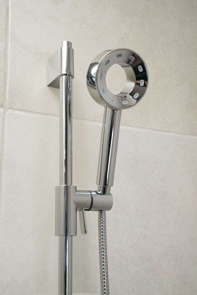 – Le réducteur de débit, intégré directement dans certaines douchettes, limite automatiquement la consommation et permet jusqu’à 50% d’économie d’eau, sans perte de performance.